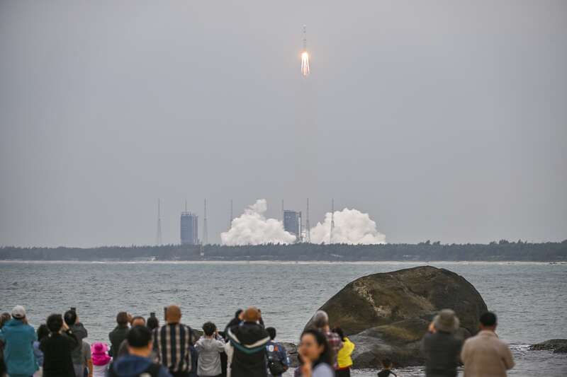 长征八号遥三火箭采用芯级捆绑两枚液体助推器的两级半构型,全箭总长50.3米。此次任务是长征八号运载火箭首次执行探月轨道发射任务。研制团队根据多窗口多弹道、低空高速飞行剖面等任务需求,对火箭进行了设计改进和优化,扩展了任务适应性,提高了可靠性。此次还搭载发射了天都一号、天都二号通导技术试验星。这是长征系列运载火箭第512次发射。