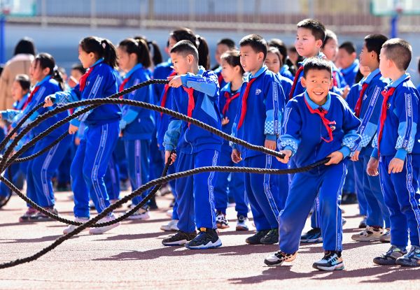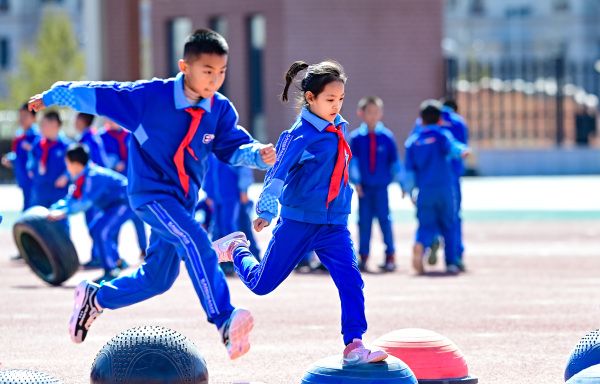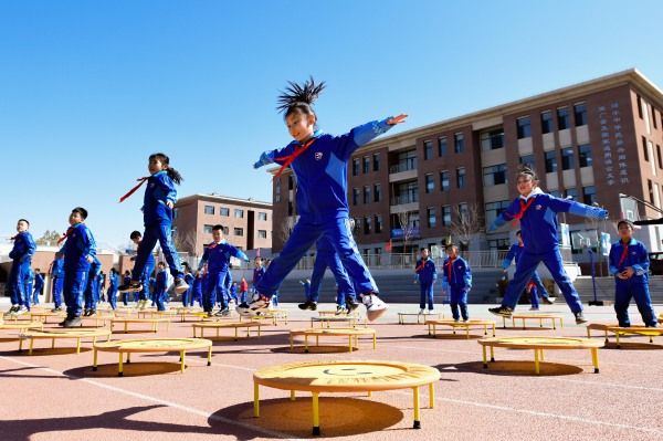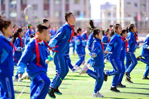 近年来,内蒙古自治区鄂尔多斯市康巴什区持续落实“双减”政策,全面推进素质教育。各中小学将花式排球、花样跳绳、体操、啦啦操以及蹦床、战绳、跳跳杆、掷沙包等10余项生动有趣的运动项目纳入大课间活动,让孩子们在体育锻炼和趣味游戏中增强体质、健康成长。