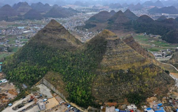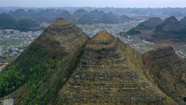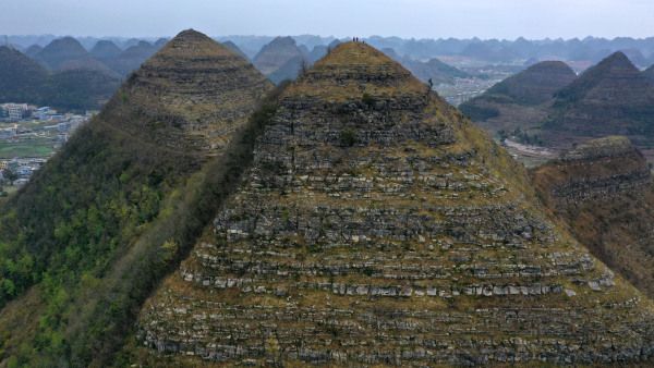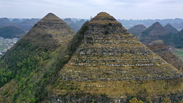 2024年3月20日,贵州黔西南州,安龙城郊喀斯特峰林发育区造型酷似"金字塔",在网络上迅速走红,一时间出现千奇百怪的说法,人工堆砌说、皇室古墓说、自然形成说等等,被炒作得沸沸扬扬,带着疑问专程驾车到实地进行了考察。