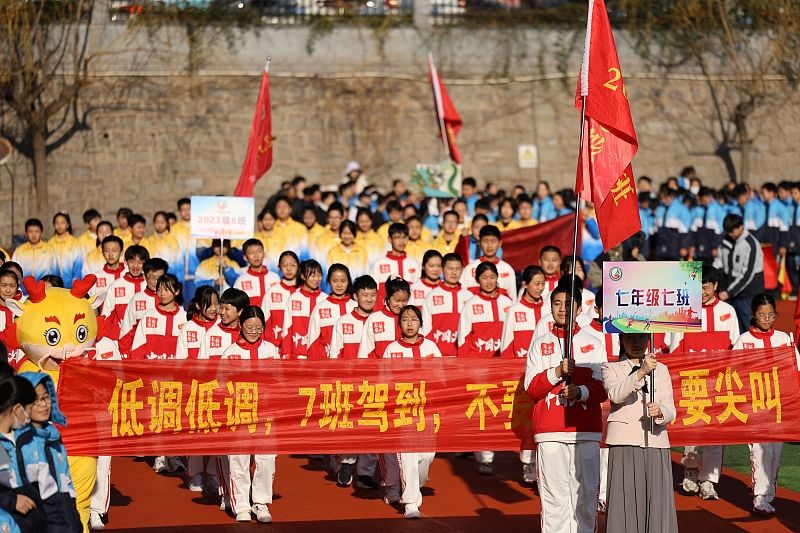 在各班的入场式表演中融入了爱国、爱校等主题,体现了学生们的青春活力。入场式表演学生们斗志昂扬,有装扮成“网红蛙”参与到班级的入场表演中来,还有国风,丰富多彩。随后,铅球、跳远、赛跑等单人和集体项目比赛有序进行。在运动场上,运动健儿们集体荣誉感“爆棚”,以昂扬的姿态驰骋赛场,拼尽全力放手一搏,尽显运动精神和青春风采。