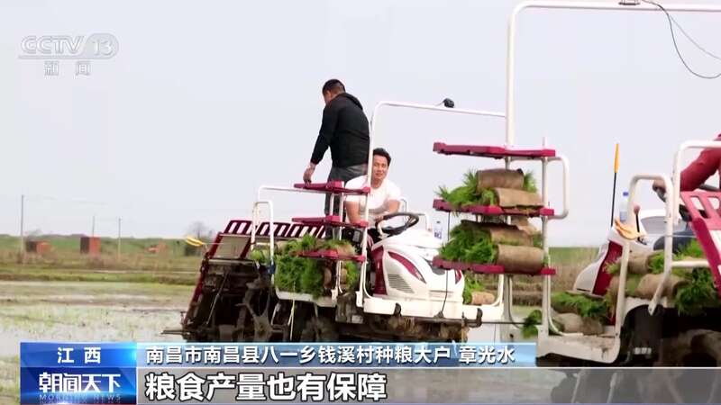这几天,江西南昌早稻栽插全面展开。今年,当地加大水稻机播、机插等农机化集成技术应用,早稻栽插机械化率预计超过57%,进一步提高单产水平。在钱溪村,种粮大户章光水的200亩早稻正加紧栽插,农机手正驾驶高速插秧机将一株株嫩绿的秧苗整齐有序插入田里。