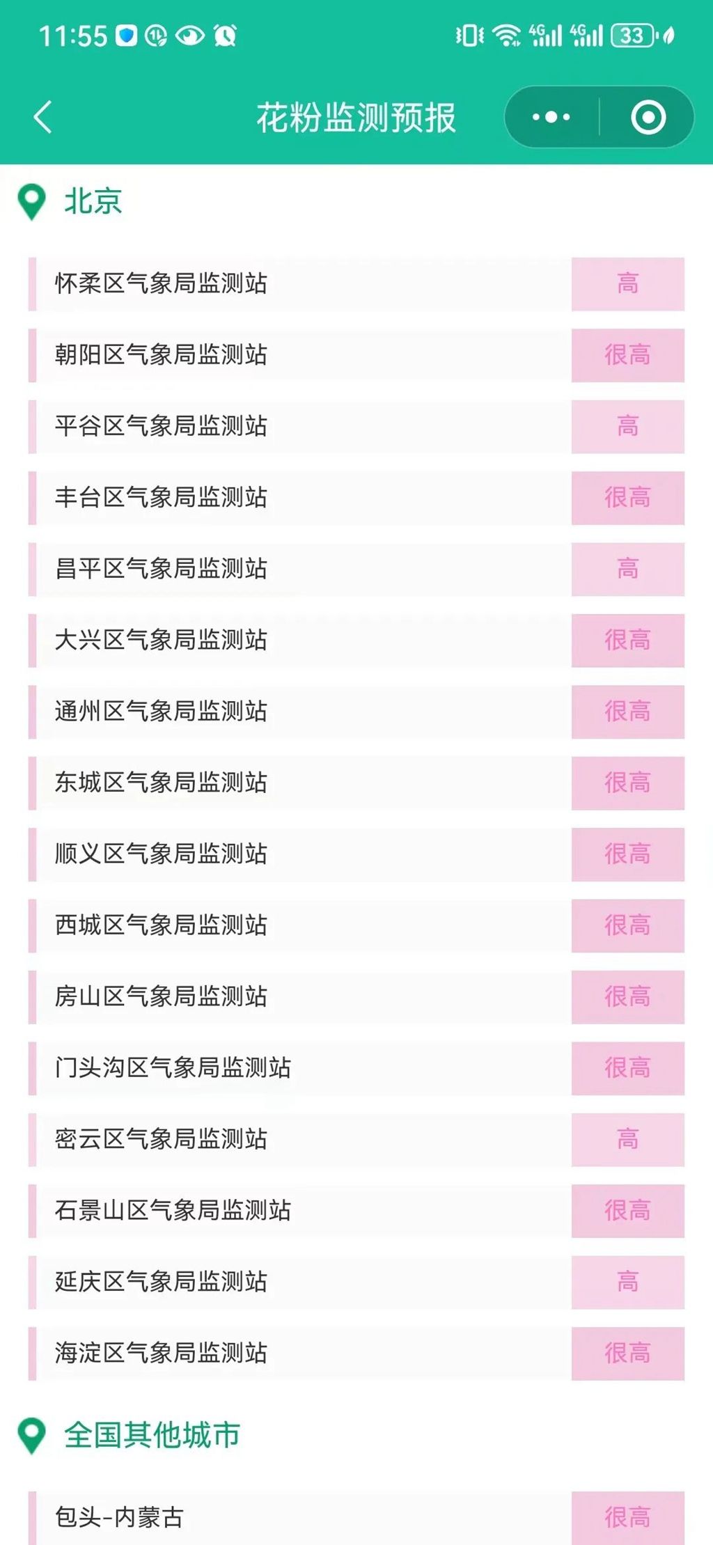 特别是雷暴或气象变化的预警,建议在雷暴发生时,尽量关好门窗,待在室内。花粉浓度升高时,也尽量减少户外活动。