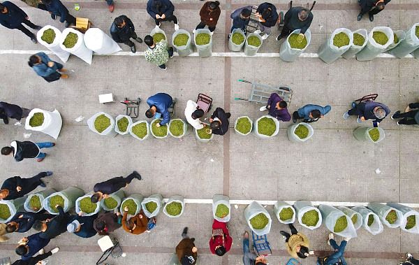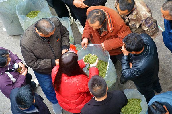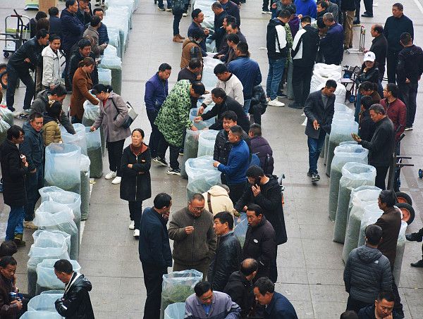 2024年4月8日,安徽省安庆市岳西翠兰茶城,茶农和茶商在进行春茶交易,一派繁忙景象。眼下,随着新茶陆续上市,吸引大批茶商前来“寻宝”。