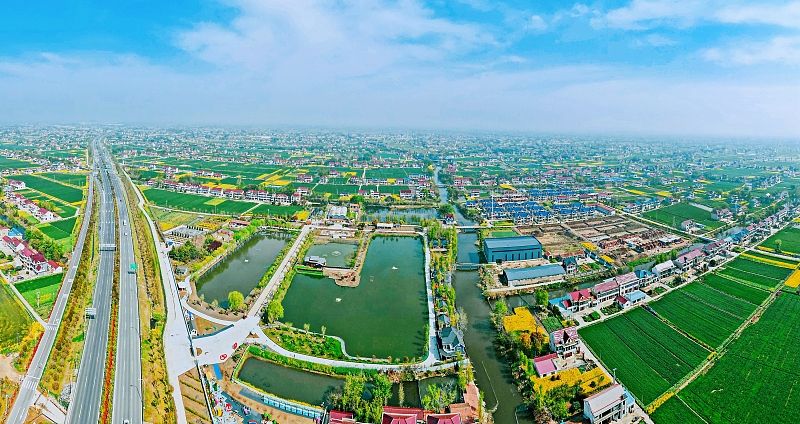 4月9日,江苏南通,俯瞰如皋市九华镇春日乡村,绿色的田园、错落的民居、金色的油菜花等相互映衬,构成了一幅幅多彩的和美乡村画卷。近年来,江苏省如皋市大力推进宜居宜业和美乡村建设,持续开展农村基础设施提升、乡村风貌塑新、人居环境净美、文明乡风培育等行动,统筹优化乡村生产、生活、生态空间布局,绘就“强富美高”乡村新图景,29个村(居)入选江苏省首批宜居宜业和美乡村名单。
