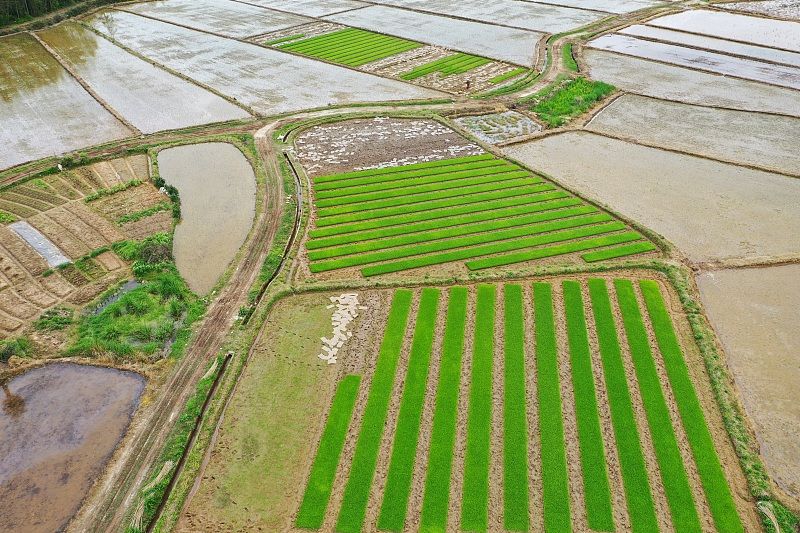 4月10日,江西抚州,金溪县琉璃乡桂家村,农民正在早稻秧田起秧,准备移栽到大田。