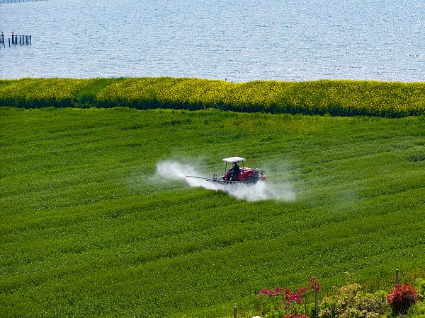 4月10日,江苏昆山,农民驾驶植保机正在锦溪镇三联村麦田进行小麦赤霉病防治作业。