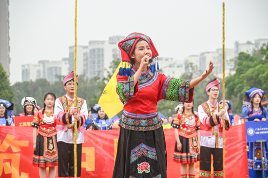 “嗨嘹嘹啰,嗨幸福嘹嘹啰……”唱起记忆中的壮族山歌,19岁广西女孩莫夏琳开心地笑了。不久前,在广西大学第十届“三月三”民族文化体验展示活动现场,不少同学身着民族服饰,手拉手载歌载舞,脸上洋溢着笑容。