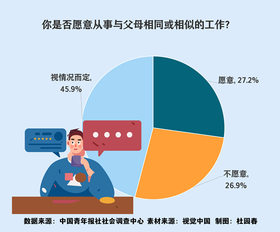 你愿意从事父母的职业吗?这应该是很多大学毕业生都会思考的问题,也是一些家庭正在讨论的话题。有的人觉得,站在父母的肩上能看得更远;有的人则认为,跳出熟悉的圈子,才能看到更广阔的世界。