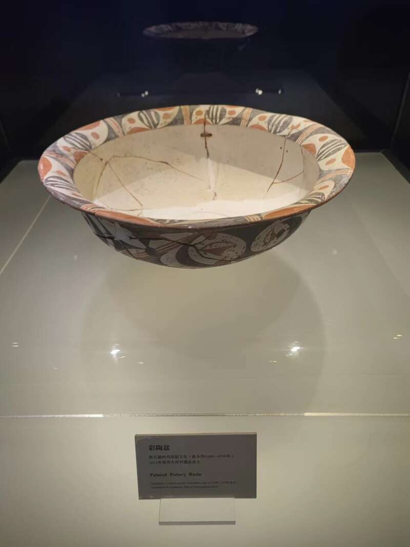 “仰韶文化,又被称为彩陶文化。”讲解员张胜芳生动地讲述着大河村遗址的彩陶文化,彩陶上的纹饰多集中在器物的腹部,以白衣或红衣打底,红彩、黑彩或棕彩绘图,颜色鲜艳,图案绚丽,构图严谨,笔画清晰有力,体现了大河村先民高超的绘画水平。