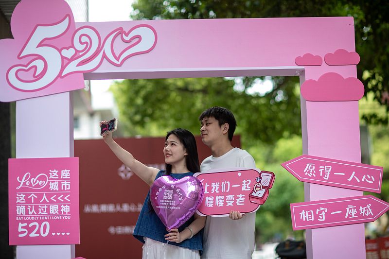 2024年5月20日,因“520”谐音“我爱 你” ,不少新人选择在当日登记结婚,幸福牵手。
