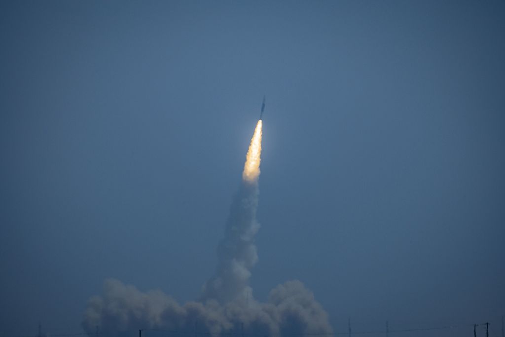 2024年5月21日12时15分,快舟十一号固体运载火箭在我国酒泉卫星发射中心点火升空,顺利将“武汉一号”等四颗卫星送入预定轨道,发射任务获得圆满成功。