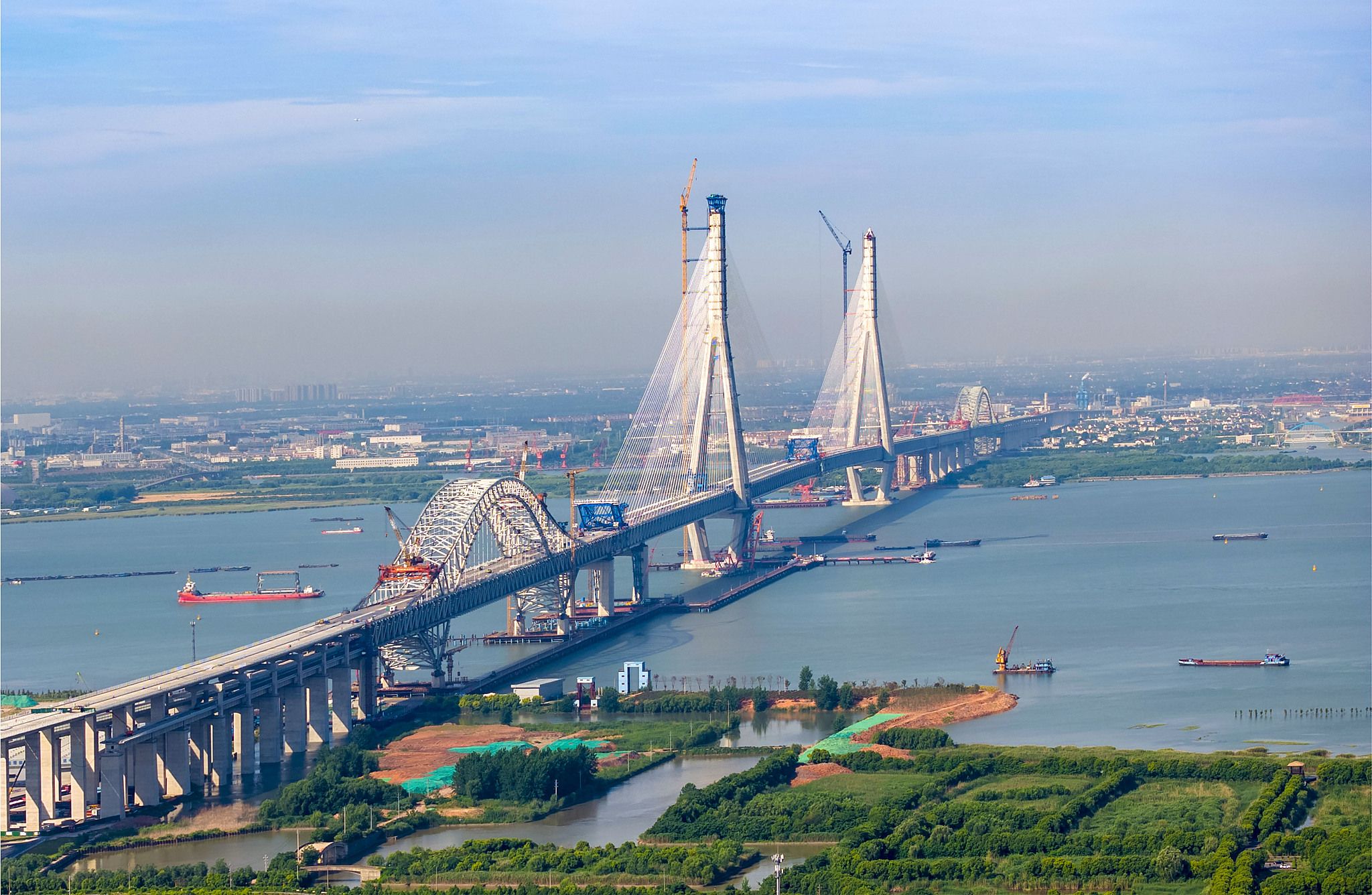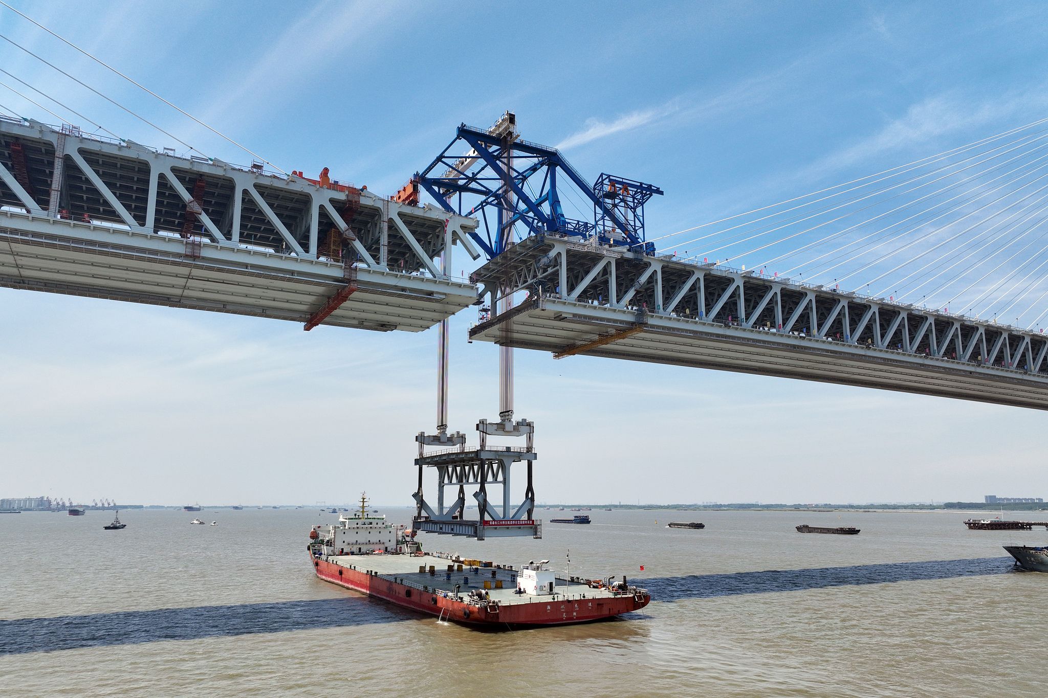2024年5月29日,江苏泰州,中交二航局参建的常泰长江大桥施工现场。