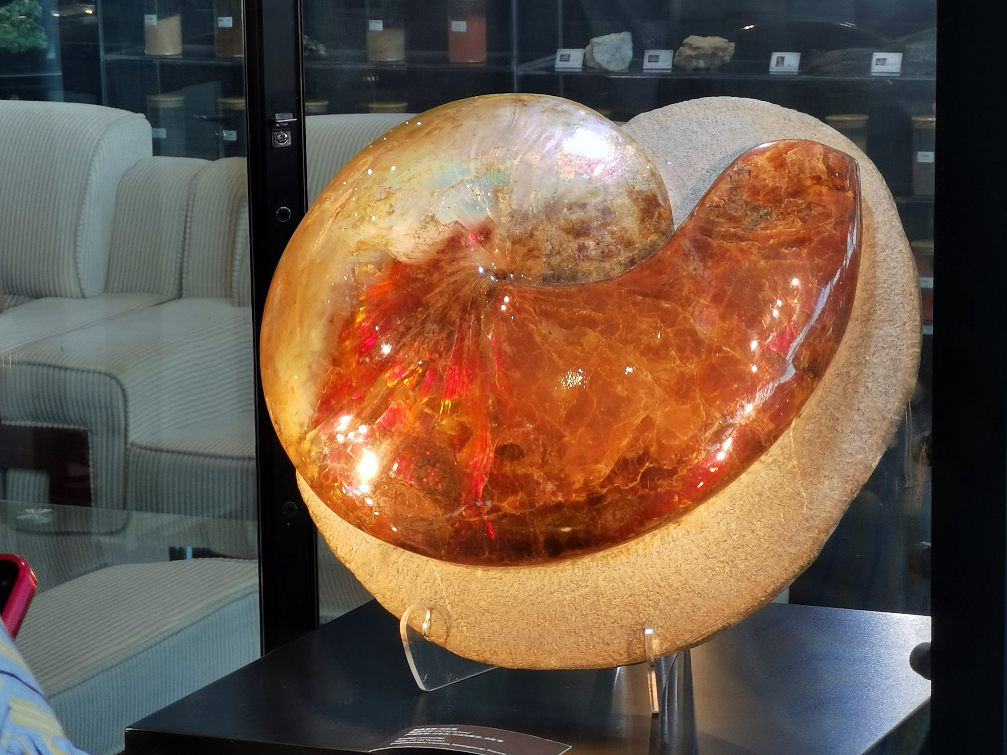 2024年5月29日,南京矿博会现场,产自美国的斑彩菊石吸引观众。