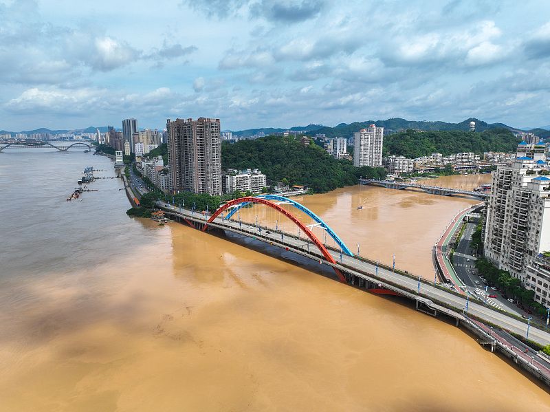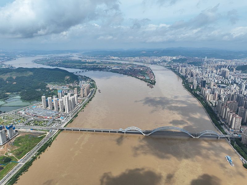 2024年6月22日上午,广西梧州,西江、桂江的洪水正在逐渐下退。