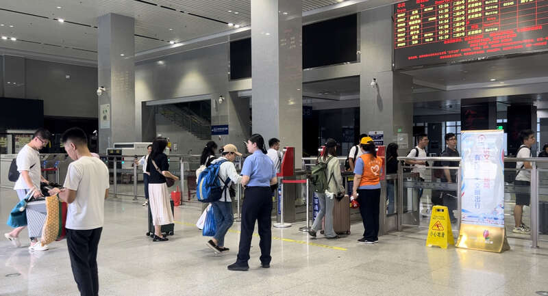 6月21日桂林站,旅客正在进站。吴欣宇/摄