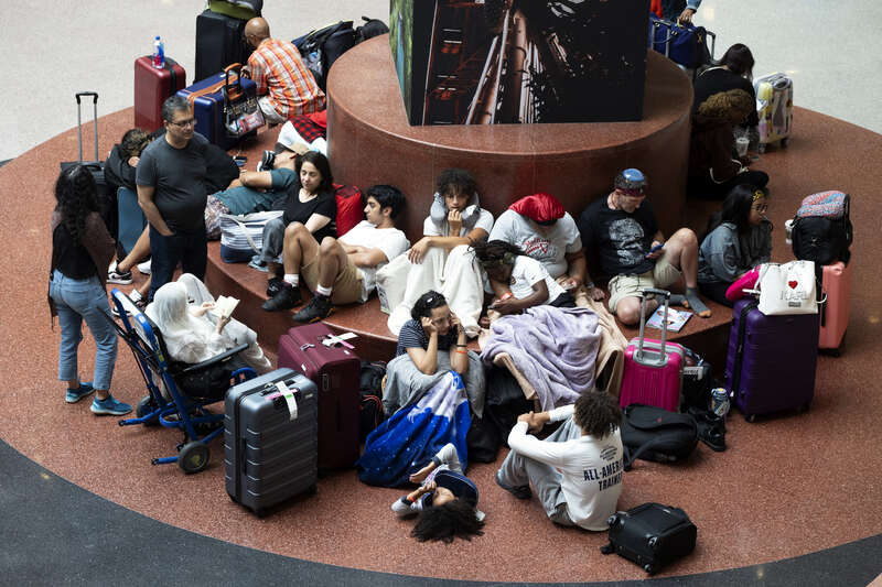 当地时间7月19日,美国亚特兰大,哈兹菲尔德-杰克逊国际机场发生重大网络故障,航班受到影响,乘客在机场候机。格林尼治时间18日19时(北京时间19日3时)开始,全球多地应用微软视窗系统的电脑因美国电脑安全技术公司“众击”的一款安全软件更新而宕机,出现“蓝屏”,航空、医疗、传媒、金融、零售、物流等多个行业受到影响。截至19日下午,该错误已被修正,但由于涉及企业太多,“蓝屏”电脑全部恢复正常仍需时日。视觉中国供图