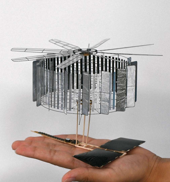 为了解决驱动和续航的难题,团队从微型发动机的原理方面寻求突破,提出一种新的静电驱动方案,研制出了在微小尺寸下转速低、发热小、效率高的微型静电电机,并成功试飞静电飞行器。