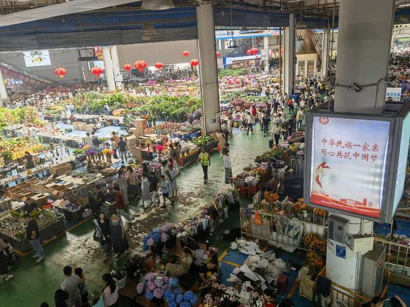 云南斗南花卉产业集团执行总裁钱崇峻介绍,目前斗南花卉交易市场不仅承接鲜切花产销业务,还售卖加工花卉及鲜花衍生产物,例如永生花、仿真花、花卉精油等。