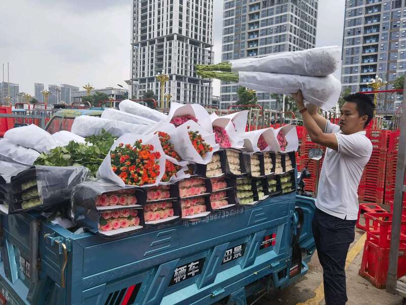 8月20日下午,记者参加“高质量发展调研行”主题采访活动时来到云南昆明斗南花卉市场,那会儿杨涛刚刚往市场运了2000扎玫瑰,这些玫瑰从采摘到送达仅需1小时。