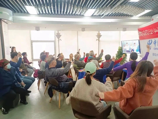联谊会定在每个月的第二个周六。带患者来参加联谊会的家属不少,医生也会鼓励他们一起来,有社工带着大家做一些简单的认知激活训练和乐动益智操。