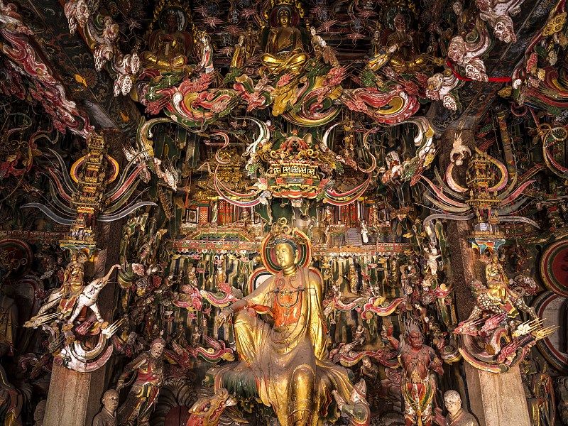 悬塑,是悬插在壁面上的彩塑。一般在殿堂内围绕佛坛塑像,在其两侧、背后及上方依托壁面塑造而成。在全国范围内说到悬塑,最为震撼的,那必须得是山西。因其历史悠久、数量之多、技艺精湛,而享誉海内外。
