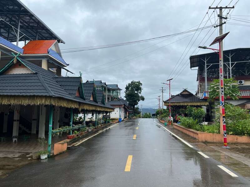 初秋的云南西双版纳雨水充沛,当地的大卡老寨村道映射出房屋的倒影,更显开阔。村小组组长迁周说:“以前的路宽只有现在的一半,(路)都是两侧的村民让出来的。”运送跳蚤草香囊的车辆就从这里经过,把村民的劳动成果带到全国各地。