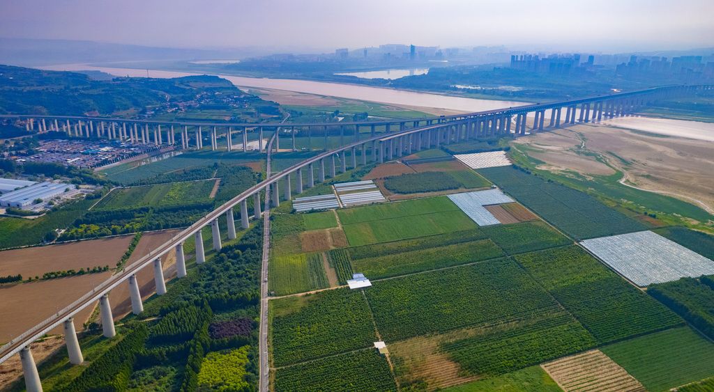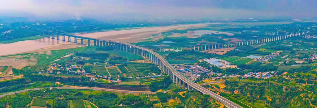 2024年9月1日,山西省运城市平陆县,运三高速公路三门峡公铁黄河大桥连接线工程,雄姿展现,蔚为壮观。