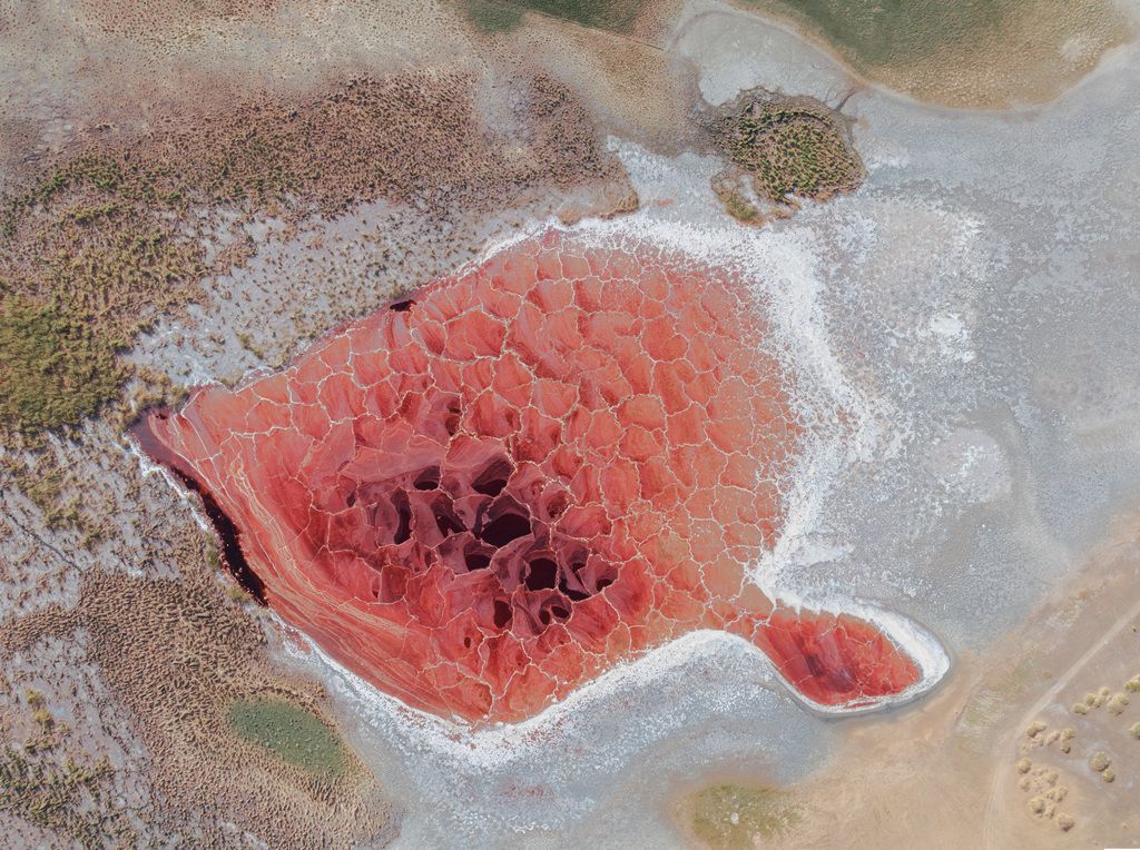 2024年8月23日,内蒙古自治区阿拉善左旗西南部和甘肃省中部边境,腾格里沙漠东部的乌兰湖。