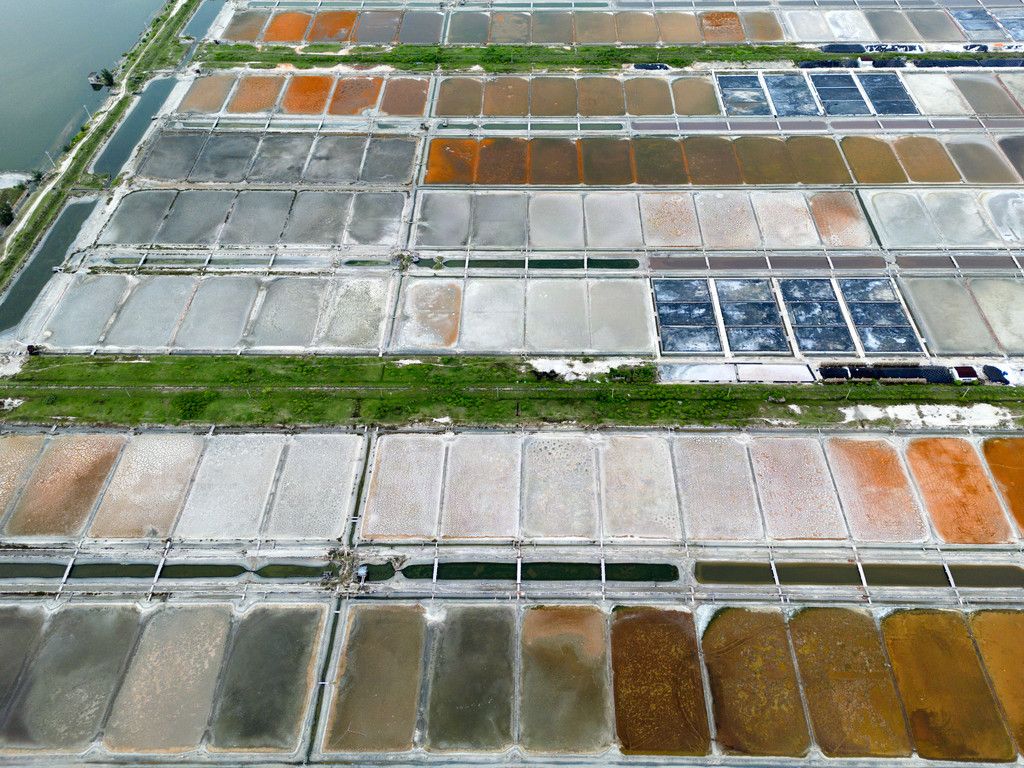 2024年8月25日,海南乐东,莺歌海盐场宛如巨型“调色盘”。