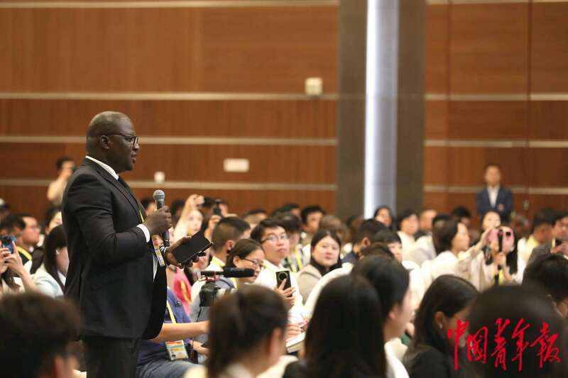 9月5日晚,北京,国家会议中心,记者见面会现场,一位外国记者提问。中青报·中青网记者 陈剑/摄