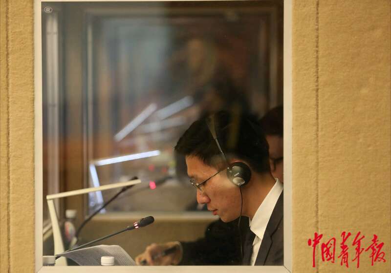9月5日晚,北京,国家会议中心,记者见面会现场的多语种同声传译员。中青报·中青网记者 陈剑/摄