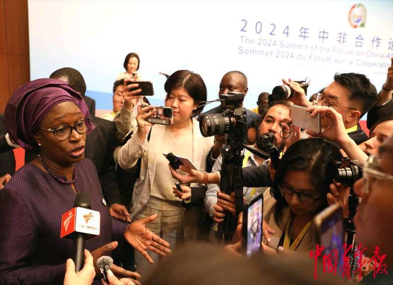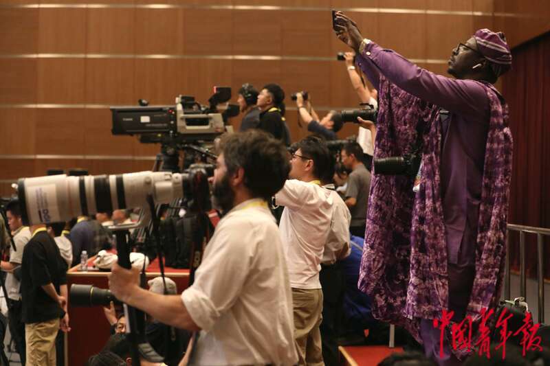 9月5日晚,北京,国家会议中心,记者见面会结束后,中外记者围住塞内加尔外长法勒采访。中青报·中青网记者 陈剑/摄