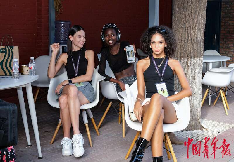 9月5日下午,北京751艺术区第一车间附近,两名来自河南的年轻模特正坐在秀场外休息。他们都是河南一所高中的高二学生,梦想是通过艺考考上北京服装学院。王藜静/摄