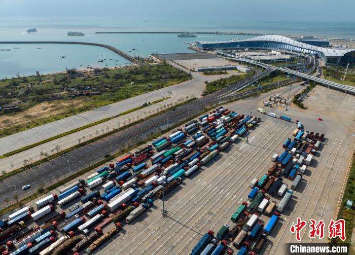 在新海港港区,货车、小车缓缓前行排队等待过海,不少旅客在自助售票机上购票等候登船。旅客张森杭购买到一张8日19时30分的船票,“到港检票后,人就可登船离岛,整个流程很顺利”。