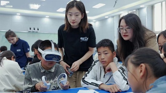 支教团成员徐冉是北师大广播电视专业研一学生,她记得,支教接近尾声时,一名初一学生跟大家分享自己的感受:“以前,我只在课文中读到过天安门,虽然知道它是我们国家的象征,但从未真正感受过那份庄严与神圣。通过VR技术,我仿佛亲临了那个激动人心的历史时刻,深刻体会到了国家的伟大,内心充满了崇敬和自豪。”