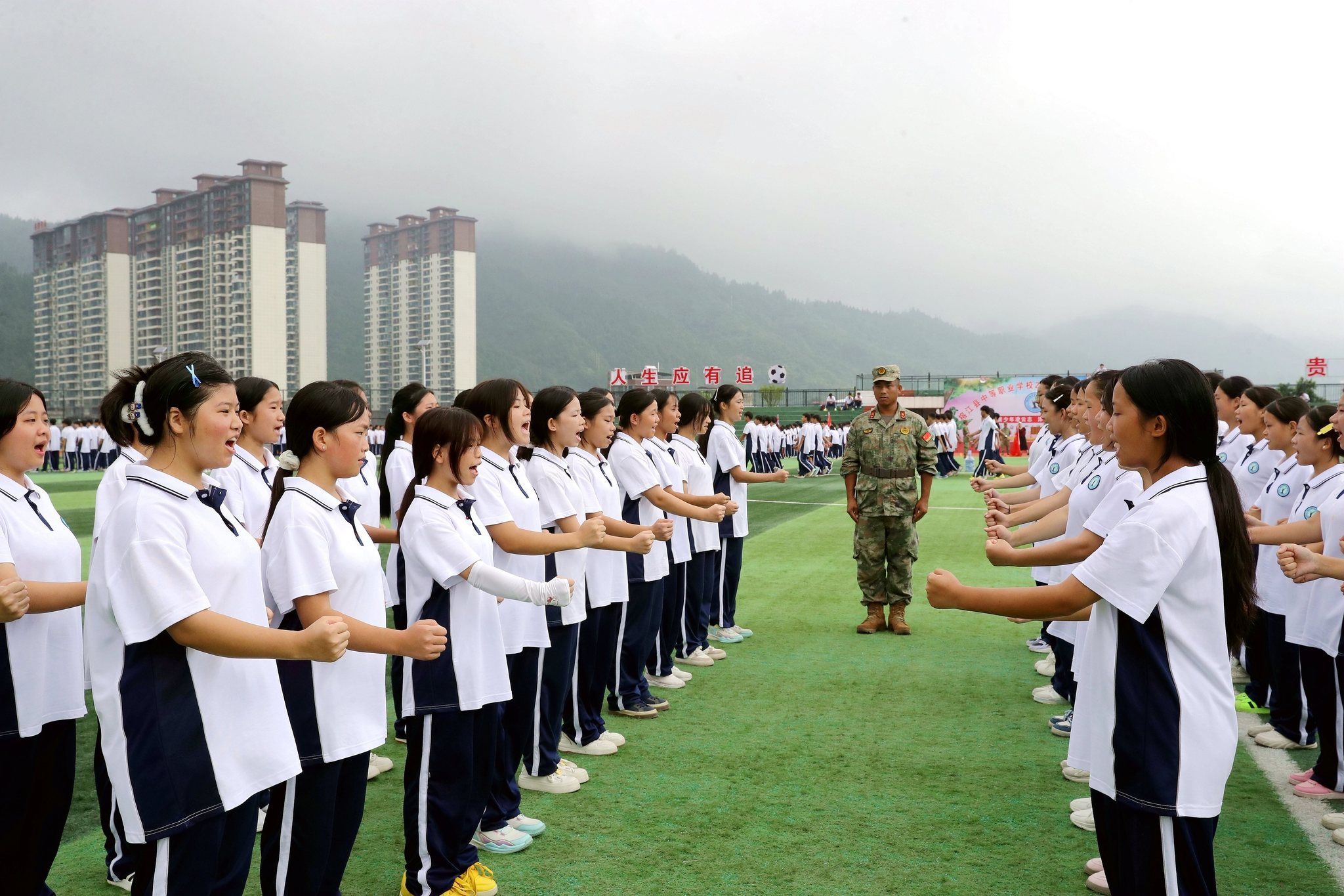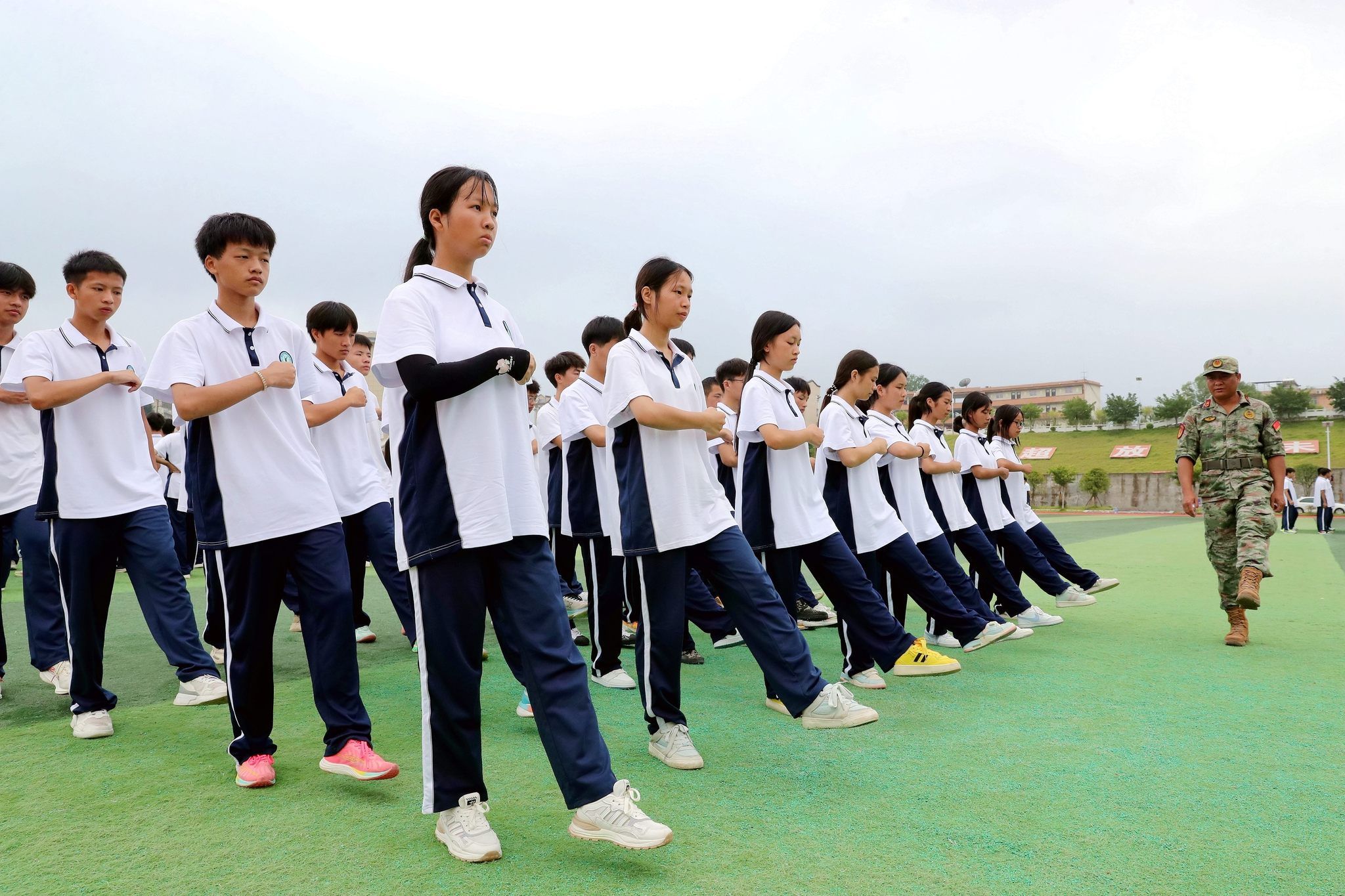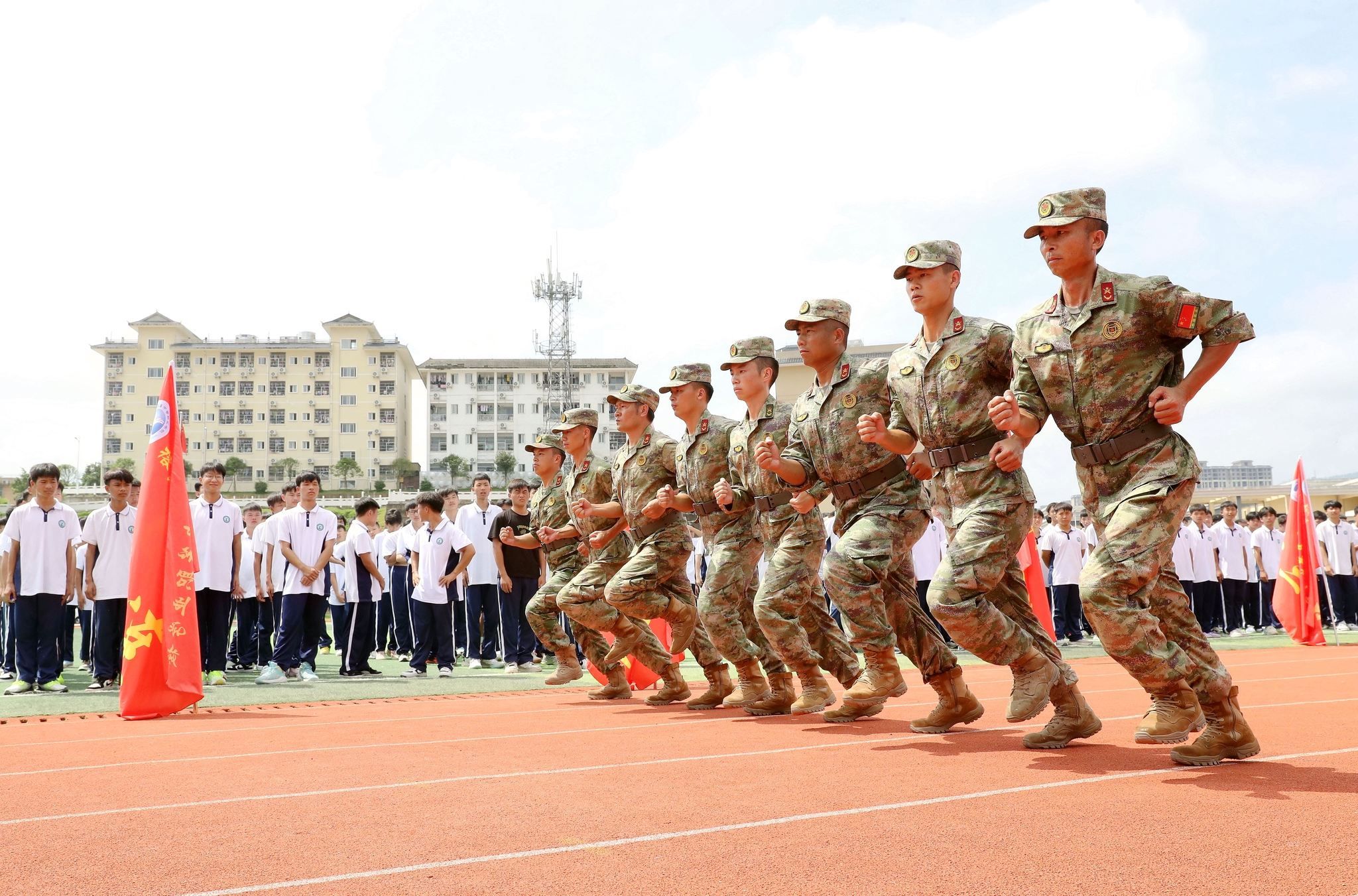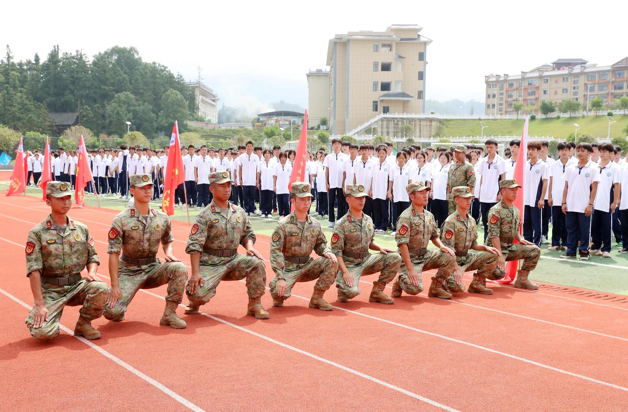 在秋季开学期间,为使学生增长国防知识,提高国防观念。贵州省黔东南苗族侗族自治州榕江县人民武装部派出教官到榕江县中等职业学校对新生进行军训以及开展国防教育活动。在军训场上对学生进行队列科目训练,做到强化锻炼,提高身体素质,磨砺意志品质。在军训期间,教官还给学生普及国防知识,对仿真枪分解与组装、枪械瞄准和军事模拟机械的讲解。通过强化军训,激发学生爱党、爱国、爱军激情。