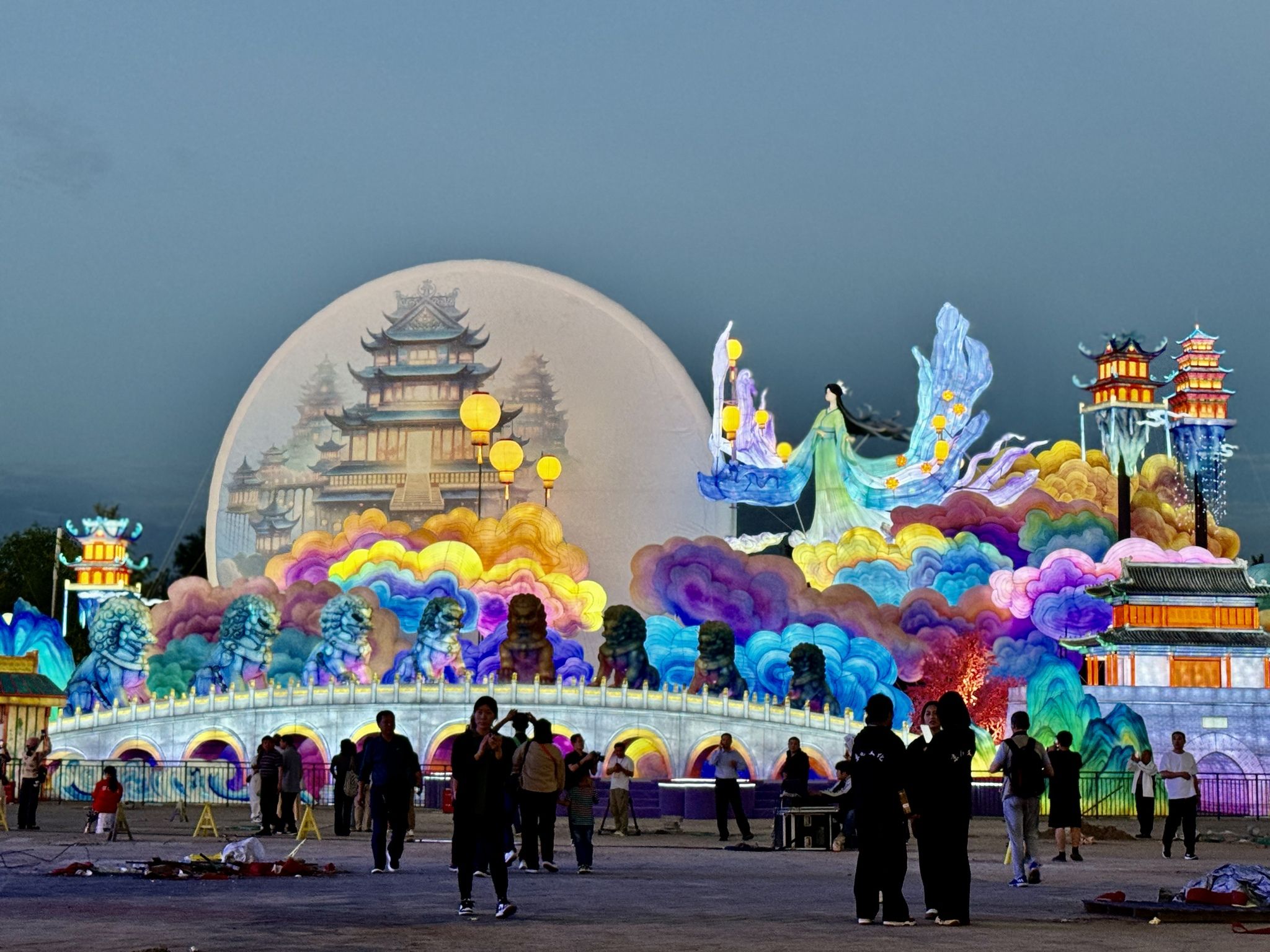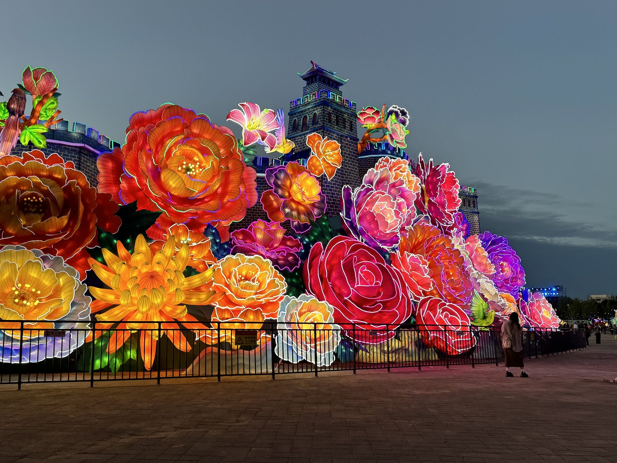 此次灯会活动占地约600多亩,48天覆盖中秋、国庆双节;200组灯组10万件灯饰将灯光艺术与传统文化进行有机融合,国家级非物质文化遗产自贡彩灯将以九大主题展区点亮京西地标,照亮中华色彩;另有150余家特色商铺和20余场文娱活动齐上线,市民和游客在灯光璀璨中,体验不一样的精彩丰台。