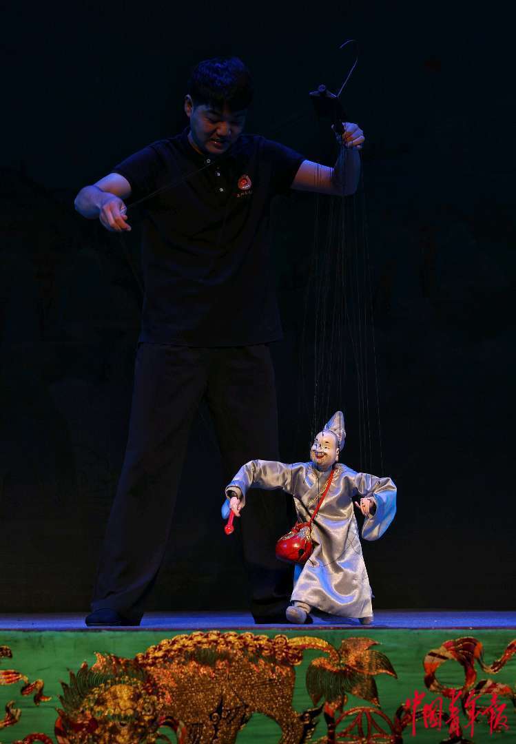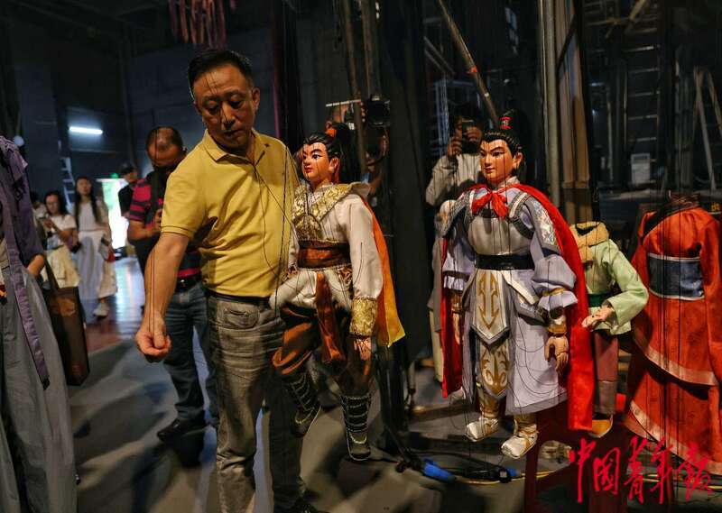 9月12日,福建泉州,泉州木偶剧院的青年演员在演绎提线木偶戏《元宵乐》。中青报·中青网记者 曲俊燕/摄