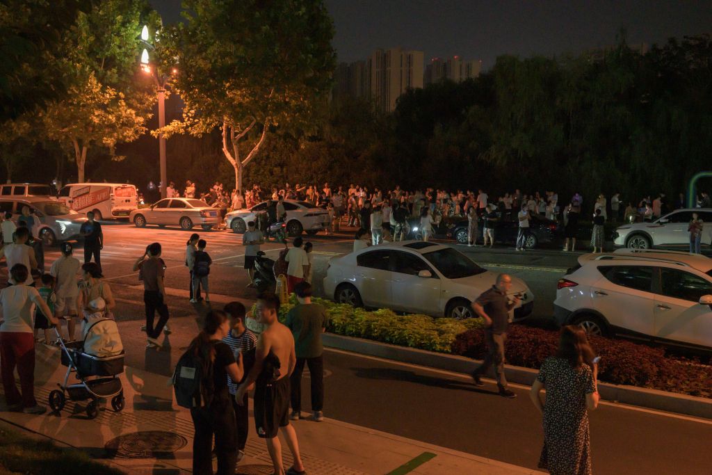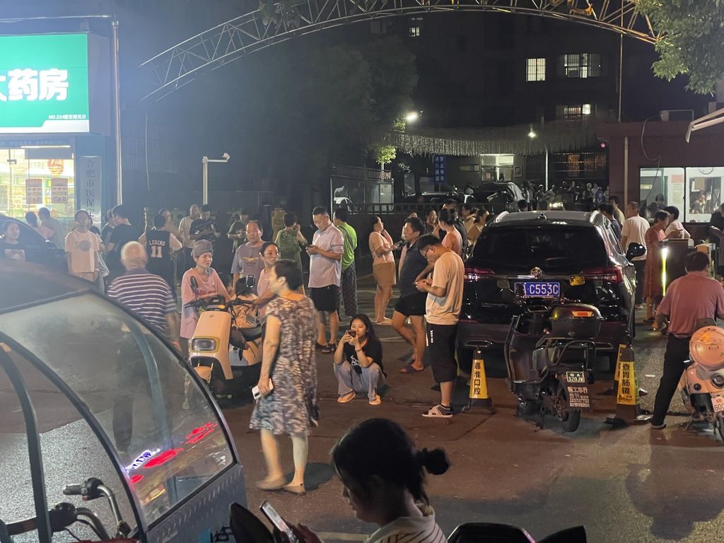 2024年9月18日晚8点零8分,合肥发生地震,市民在楼外避险。