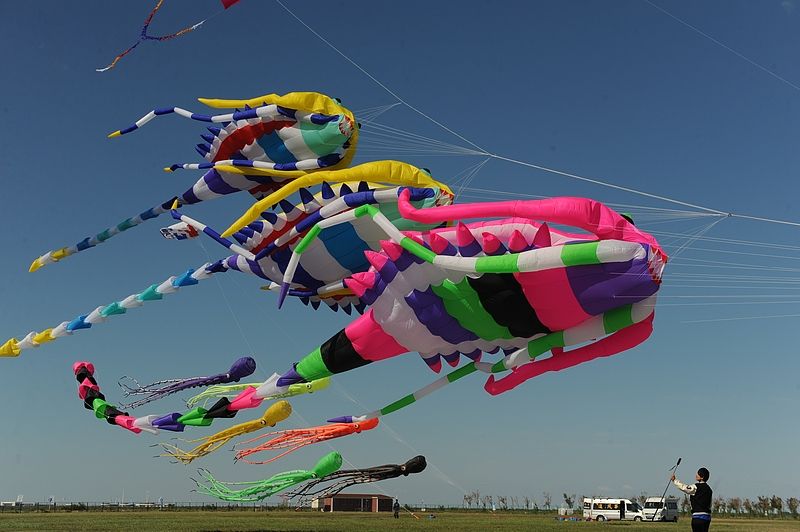 2024年9月22日,山东潍坊,五颜六色的风筝扮靓滨海风筝放飞场的天空。