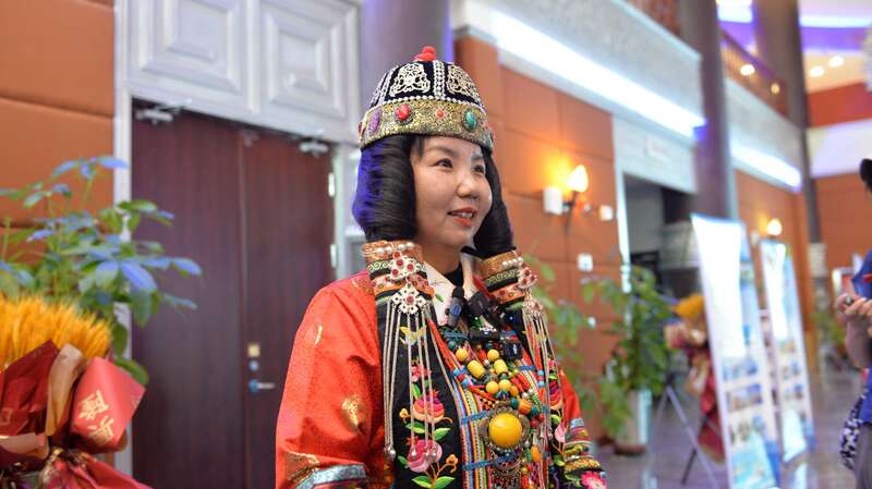 40岁的傲特海是博湖县乌兰再格森乡乌图阿热勒村村民,从小就喜欢听老人唱歌的她,很有“音乐细胞”,擅长唱蒙古族长调、短调,还学了唱江格尔、跳萨吾尔登舞蹈。除了本民族语言,傲特海汉语、维吾尔语也说得好,喜欢给周围的人当翻译,2021年获得了州民族团结模范的荣誉。