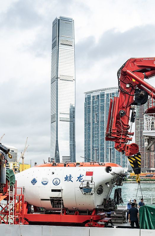 2024年9月24日,香港,中国大洋综合科考船“深海一号”携“蛟龙号”载人潜水器抵达尖沙咀码头,开始对香港特区的首次访问。“蛟龙号”是中国首台自主设计、自主集成研制的作业型深海载人潜水器。