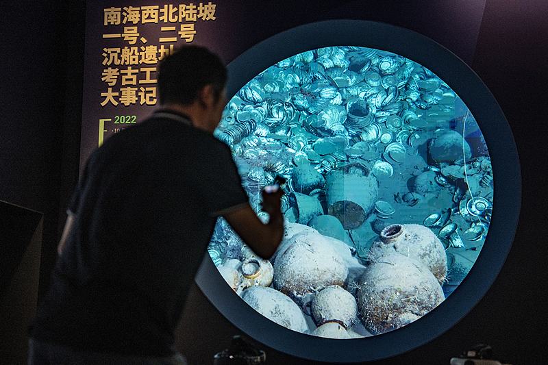 2024年9月27日,海南琼海,民众参观展览。当日,“深蓝宝藏——南海西北陆坡一二号沉船考古成果特展”在中国(海南)南海博物馆开展。本次展览是南海海域深海考古调查的成果专题展。在深海1500多米处沉睡了500多年的出水文物首次公开亮相。展览展出上述两处明代中期沉船遗址出水的文物408件(套),还有故宫博物院等借展文物34件/套,共计展出442件(套)。