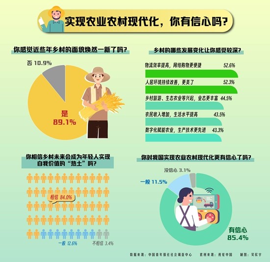 调查显示,85.4%的受访青年对我国实现农业农村现代化更有信心了。