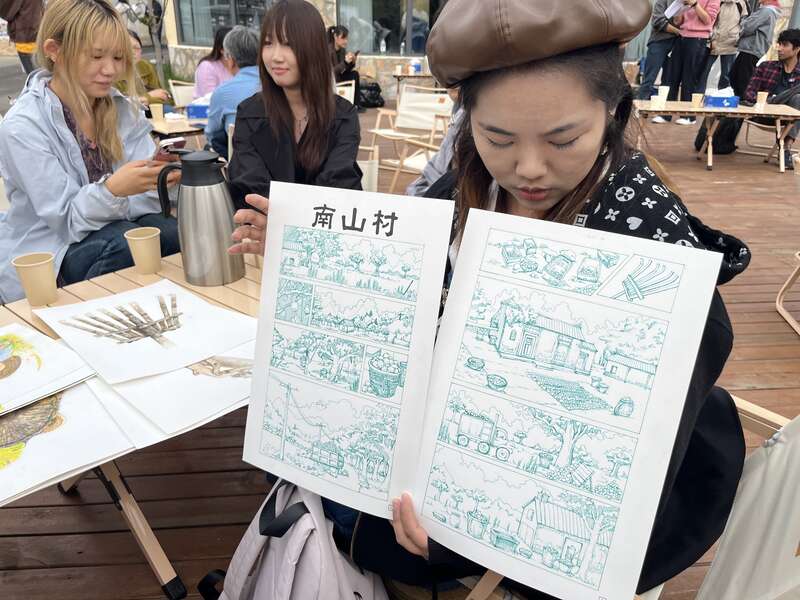中央美术学院燕郊校区城市设计学院的大三学生孙嘉田用精微素描和绘本等形式记录下南山村的生活风貌和田野风趣,这些作品未来将展示在乡村民宿等公共环境中。