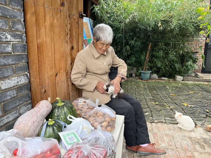 更多南山村的老百姓参与到民宿的运营和建设过程。83岁的段云珍总会在家门口摆上自己摘的蔬菜瓜果,院子有七八只小猫四处玩耍。去年,她家老院翻新改成民宿,排水系统等设施也统一更换。一谈到现代舒适的新家,段云珍就赞不绝口。