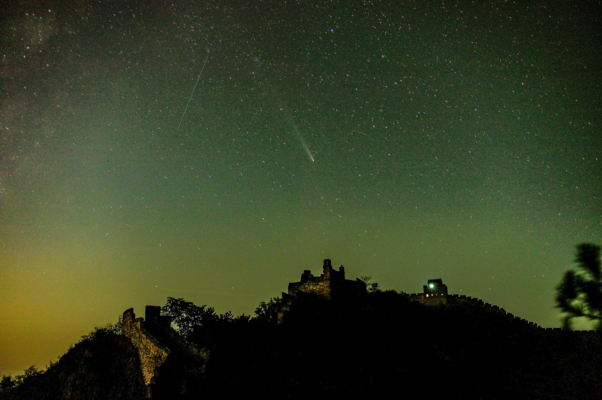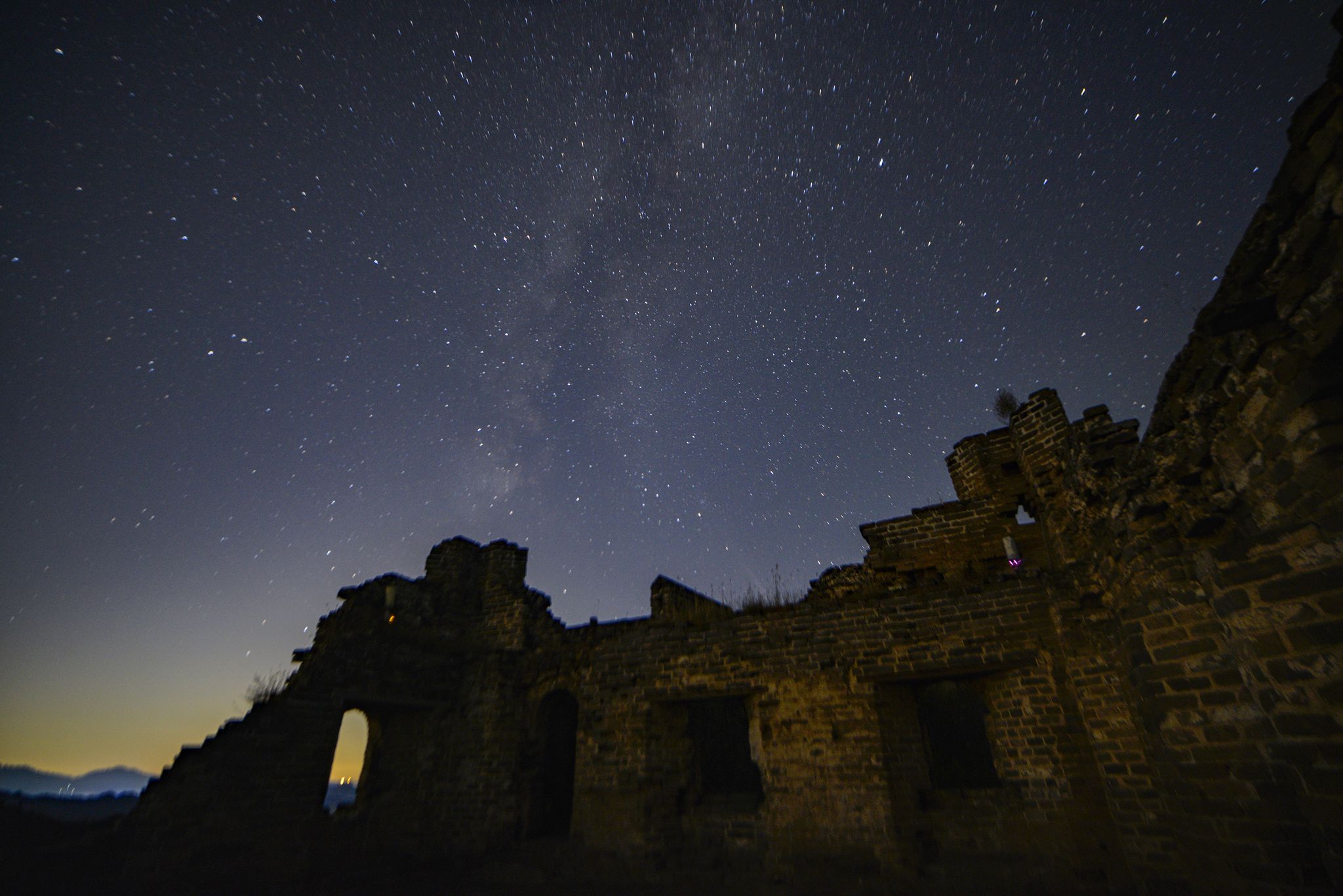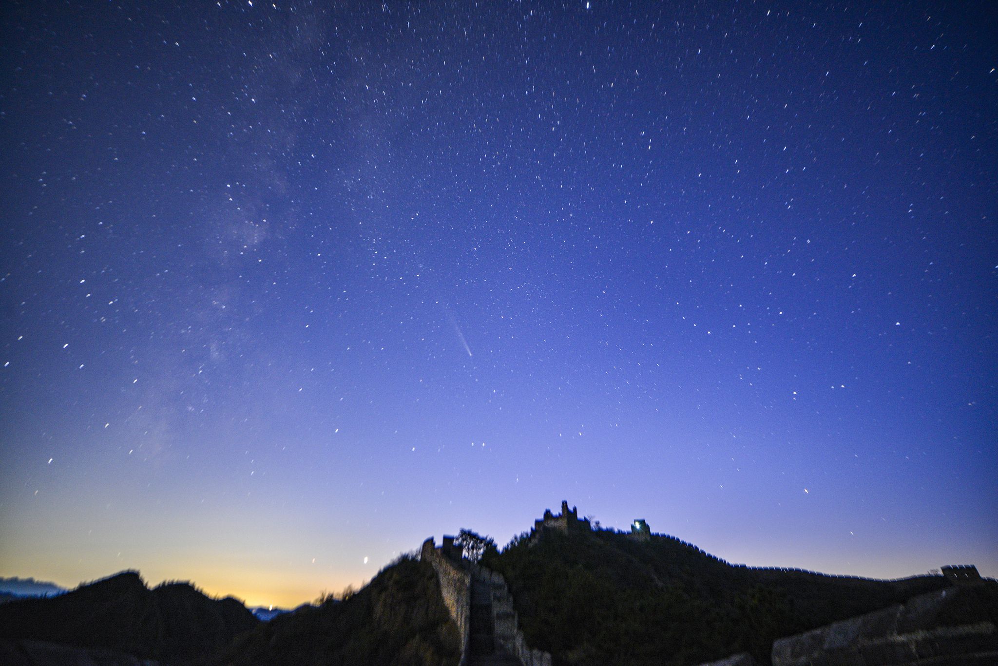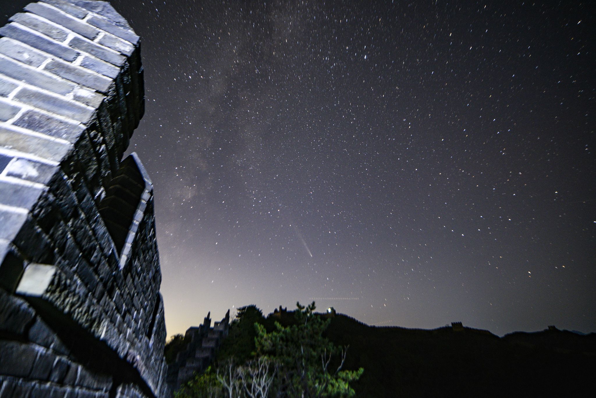 2024年10月22日,河北承德,紫金山-阿特拉斯彗星闪耀在金山岭长城上空,璀璨夺目。
