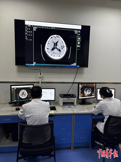 10月17日上午,记者在藁城人民医院放射科看到,医生正在诊断一名患者的颈部X光片。诊断结果是:颈椎椎体顺列整齐,生理曲度消失、变直,椎体骨质结构完整。这是当天上午9点,患者在增村镇卫生院拍的X光片。不到半个小时,藁城人民医院的放射科医生便完成了诊断。