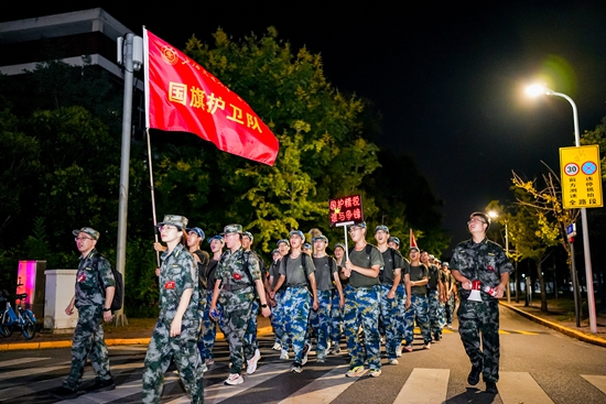 今年是中央红军长征出发90周年。为传承和弘扬长征精神,9月5日晚,上海交通大学学生军训团的5000余名师生进行了以“重走长征路”为主题的夜间负重行军拉练。