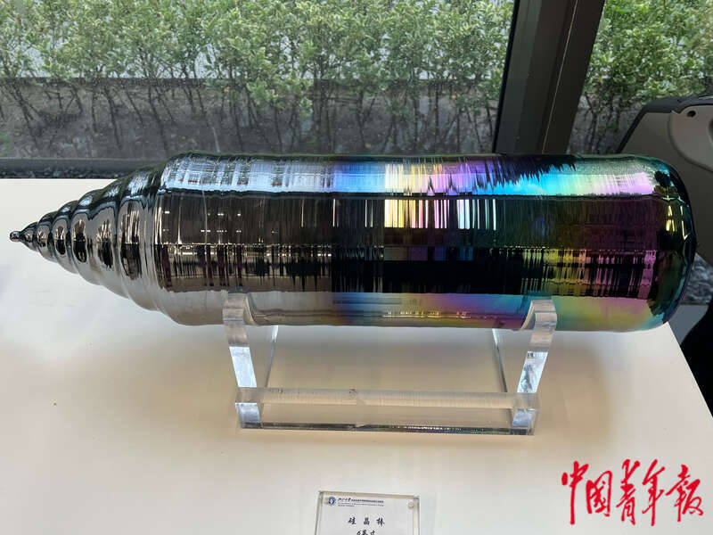浙江大学杭州国际科创中心展示12英寸硅晶棒。中青报·中青网记者 李剑平 /摄